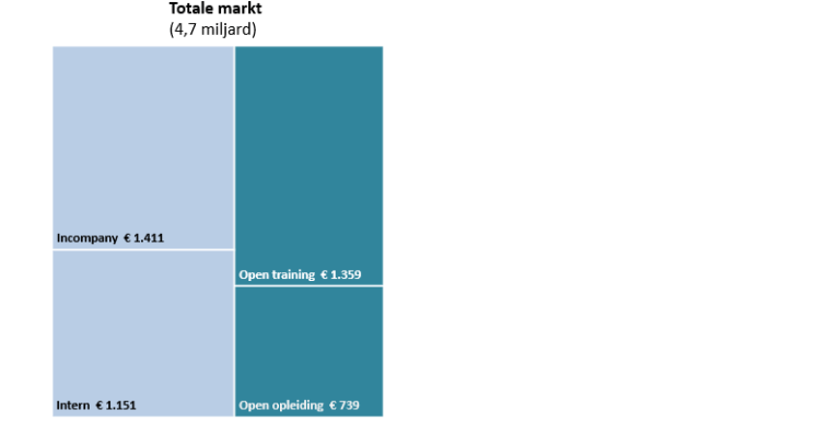 De inschatting van NIDAP kent wel de nodige beperkingen. De totale markt zou nog hoger uitkomen als ook de leeractiviteiten van kleinere bedrijven (met minder dan 100 werknemers) en zzp-ers worden meegenomen. Ook ontbreken de uitgaven van individuele consumenten die de opleiding, training of cursus geheel zelf betalen. De leeractiviteiten van de sector ‘onderwijs’ zijn ook buiten beschouwing gelaten. (In een aparte monitorstudie volgt NIDAP deze markt voor professionalisering en nascholing).